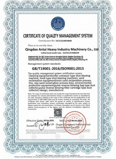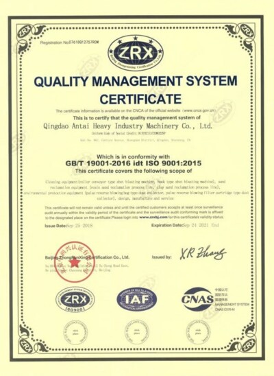 COMPANY as a shot blasting machine manufacturer has participated in several International and National Standards in the setting and has many invention patents. All the equipment has obtained CE and TUV certifications.